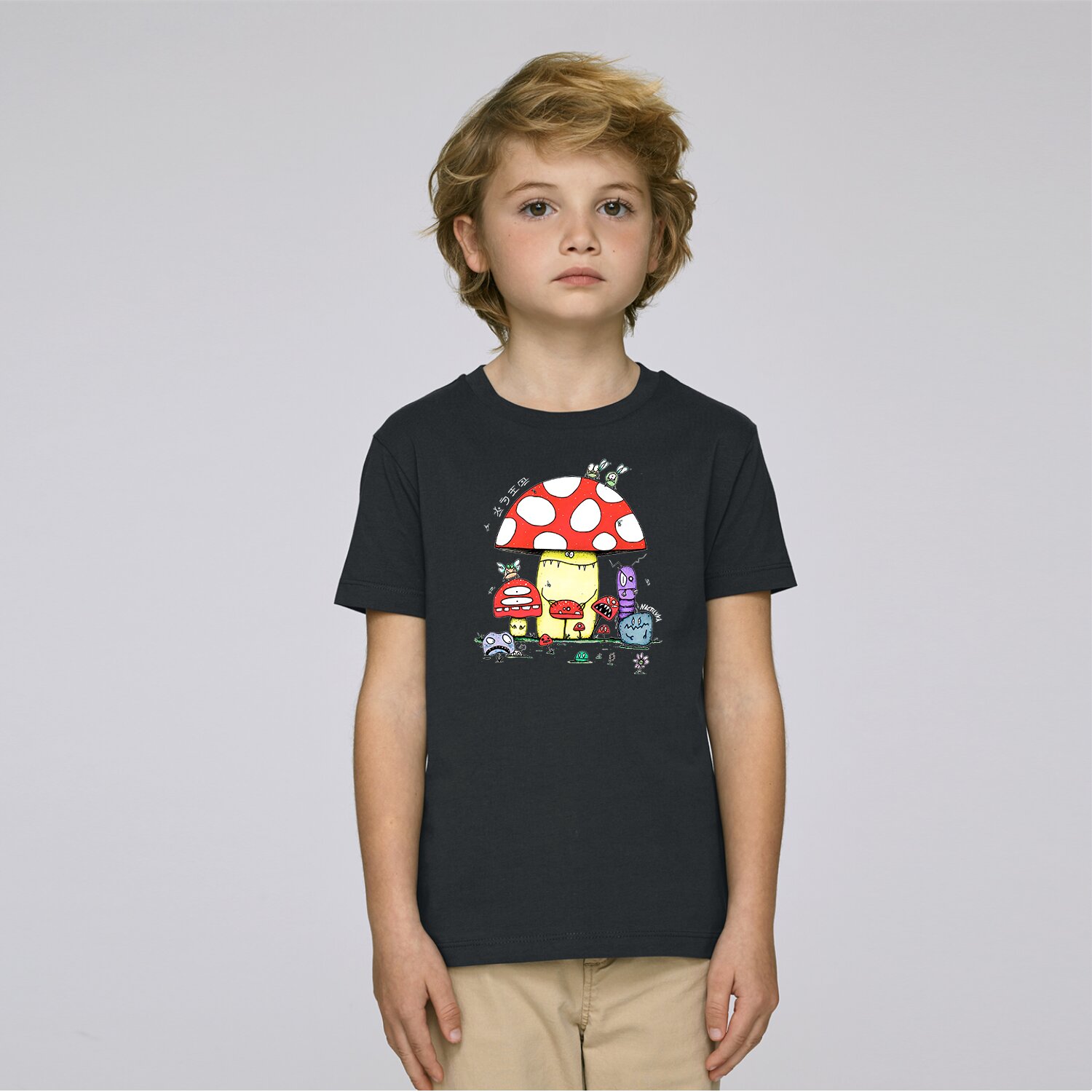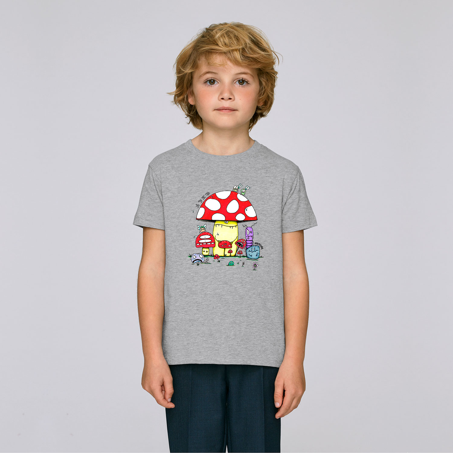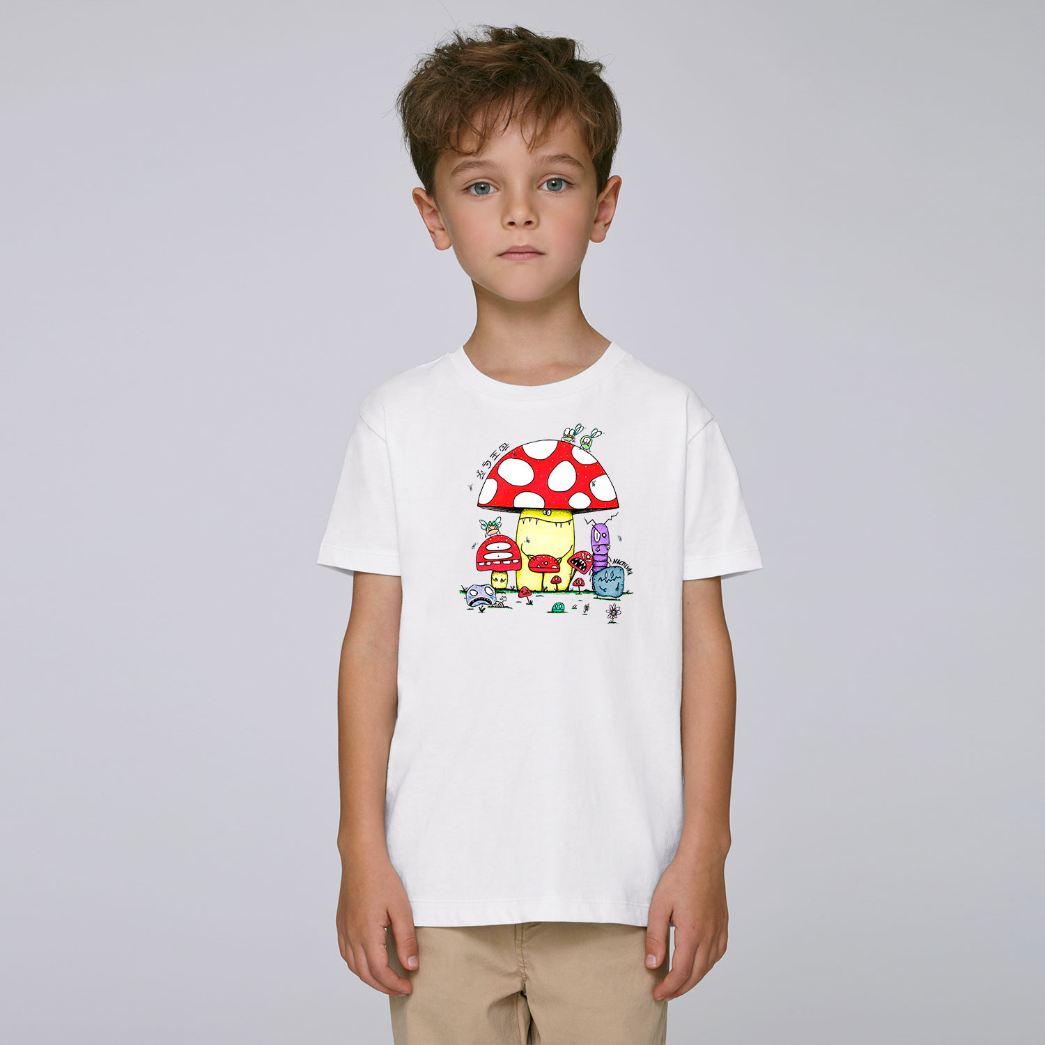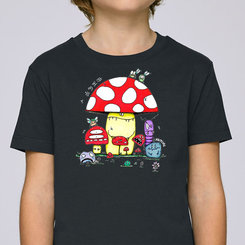 Camiseta de niño con el dibujo MUSHROOMS realizada con algodón orgánico.