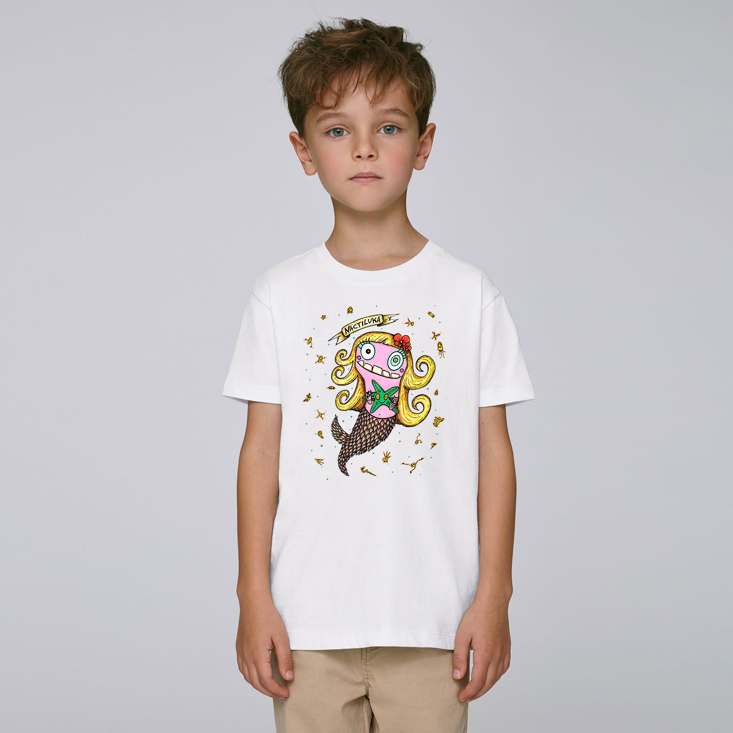 Camiseta de niño con el dibujo SIRENA NACTILUKA realizada con algodón orgánico.