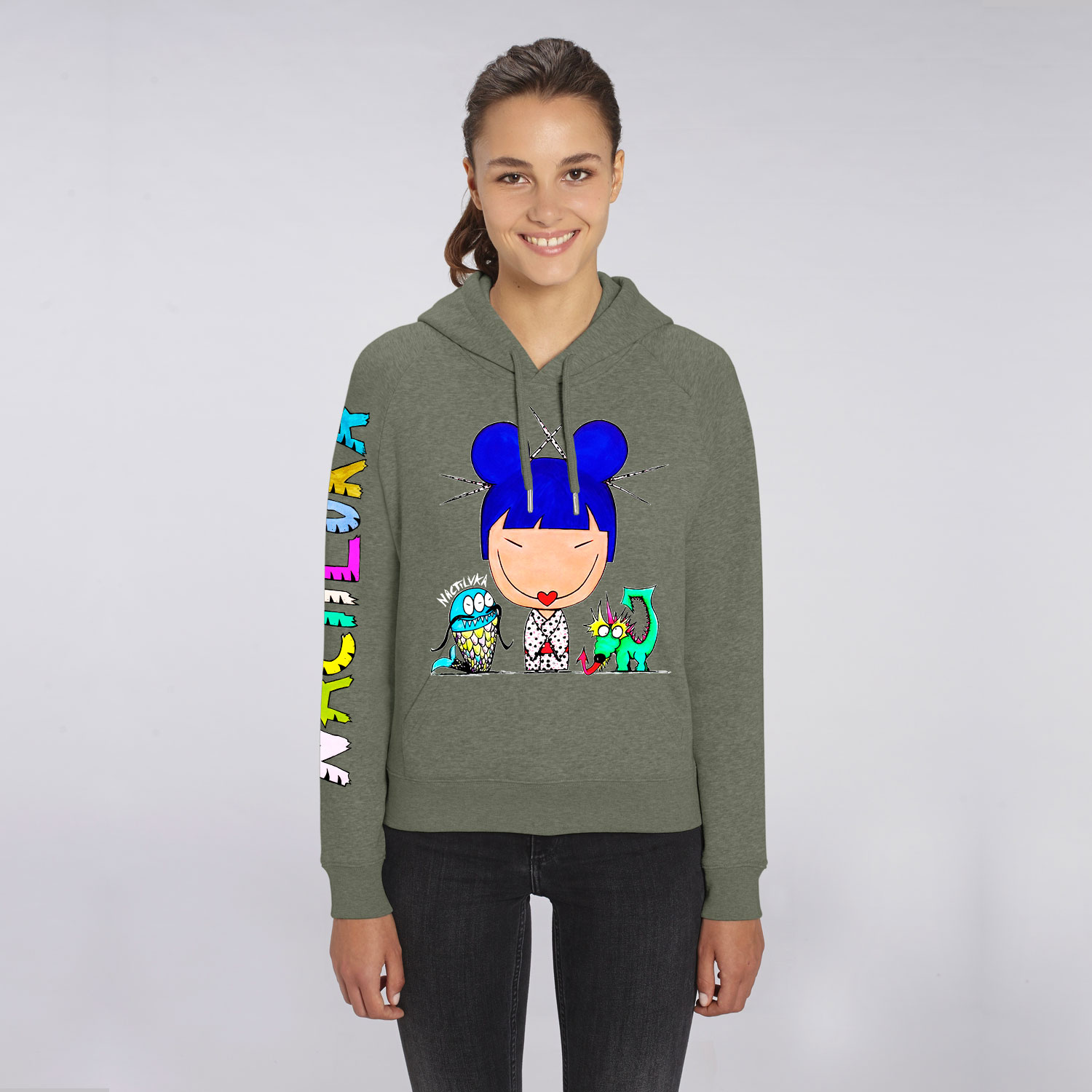 Sudadera de mujer con el dibujo CHINA聽realizada con algod贸n org谩nico.