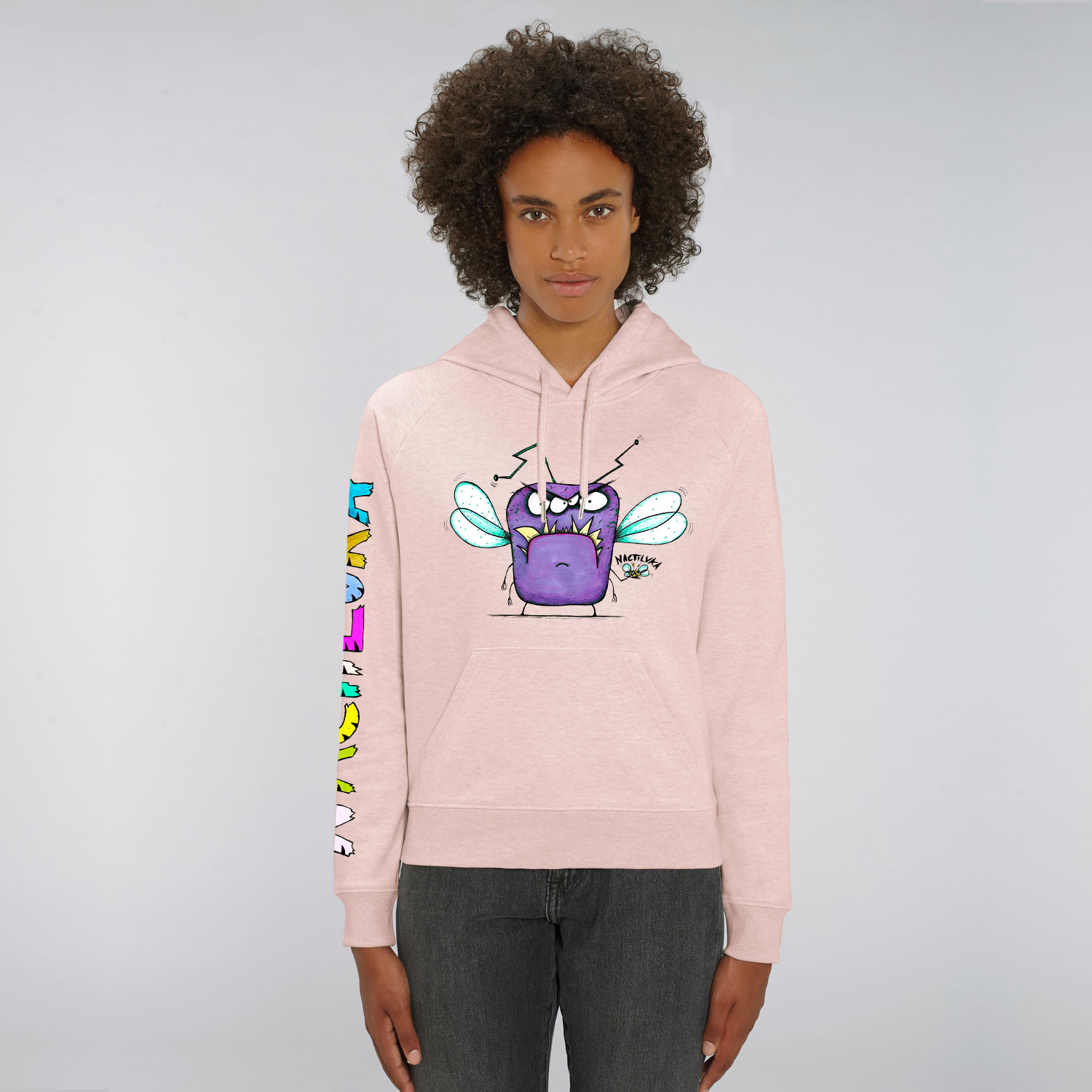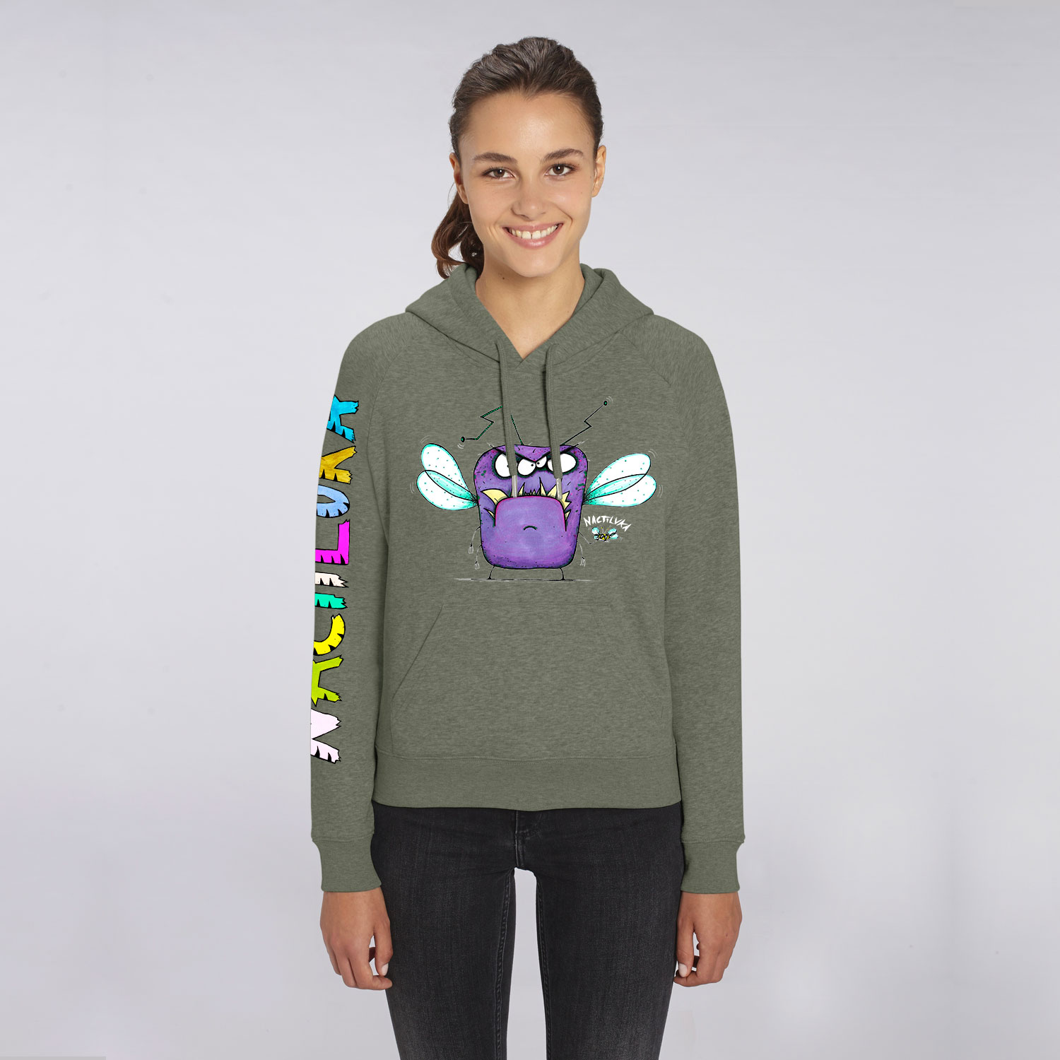 Sudadera de mujer con el dibujo MOSCA聽realizada con algod贸n org谩nico.