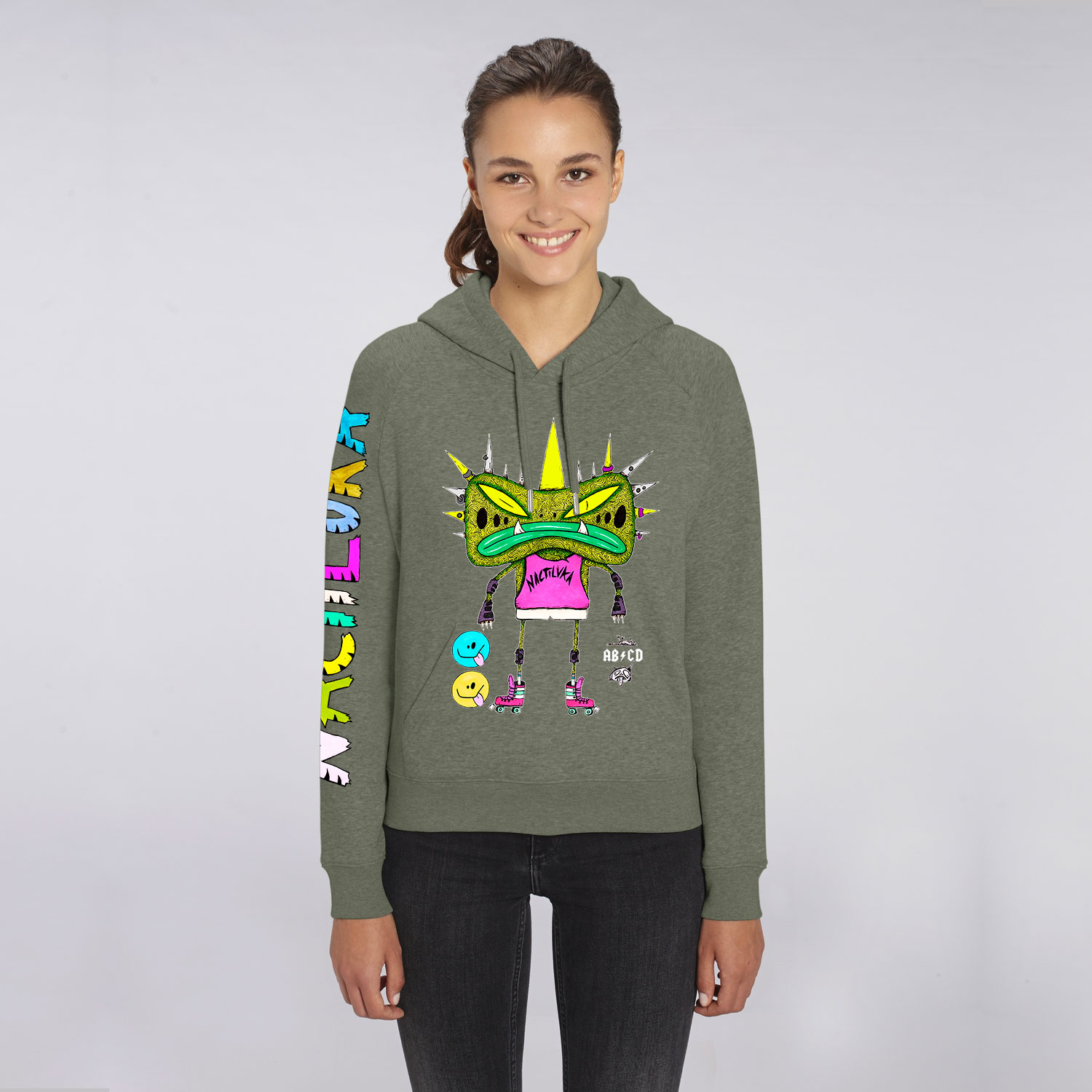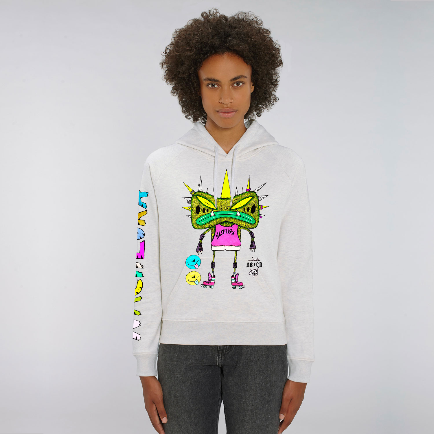 Sudadera de mujer con el dibujo PUNK realizada con algodón orgánico.