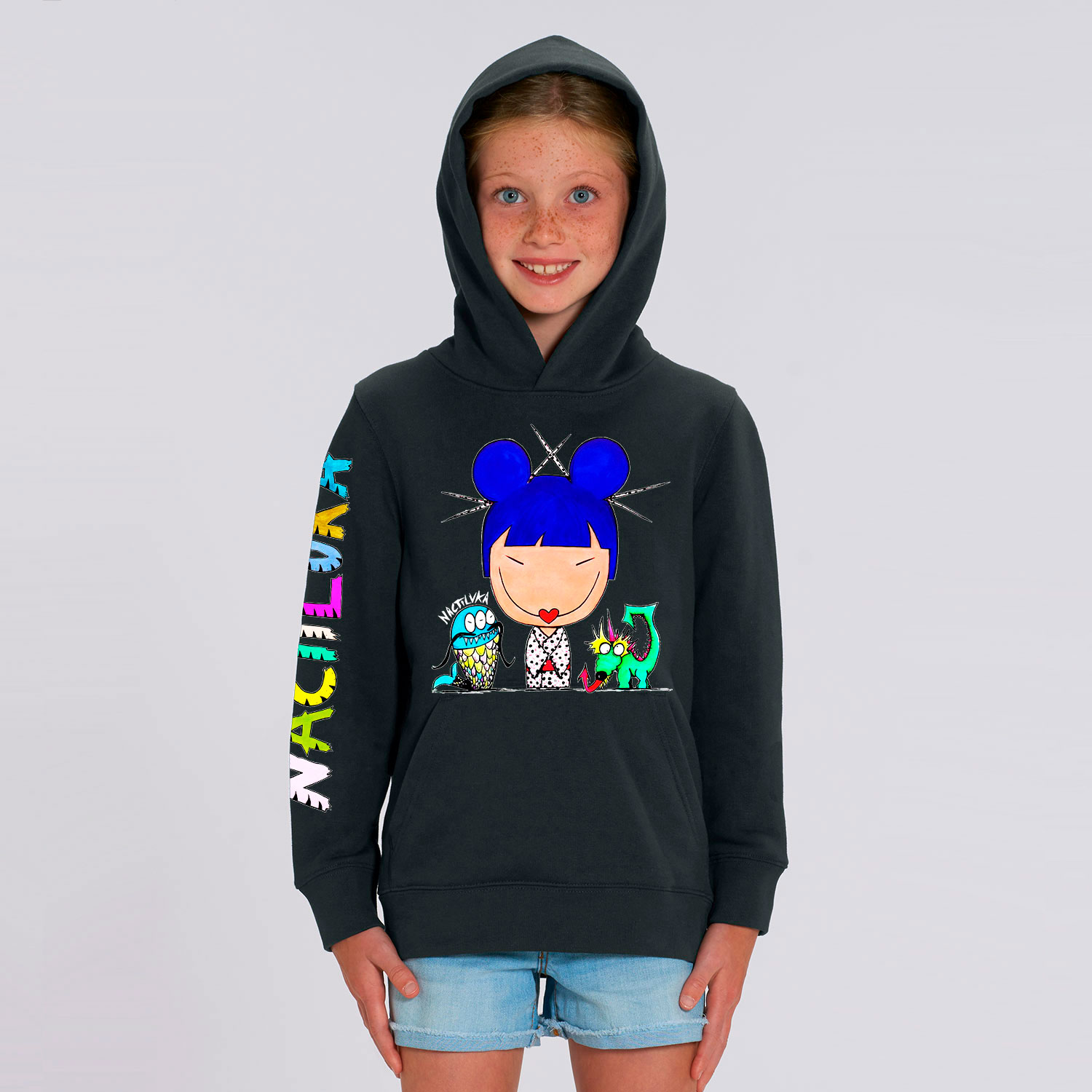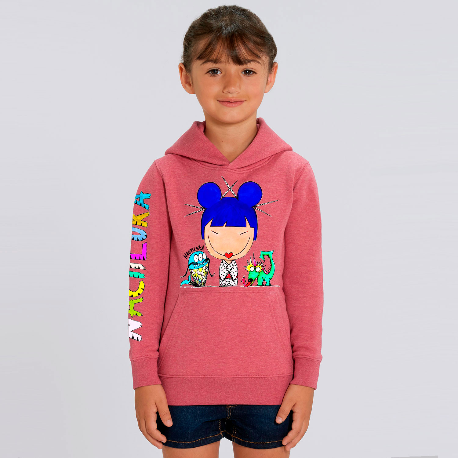 Sudadera de niña con el dibujo CHINA realizada con algodón orgánico.