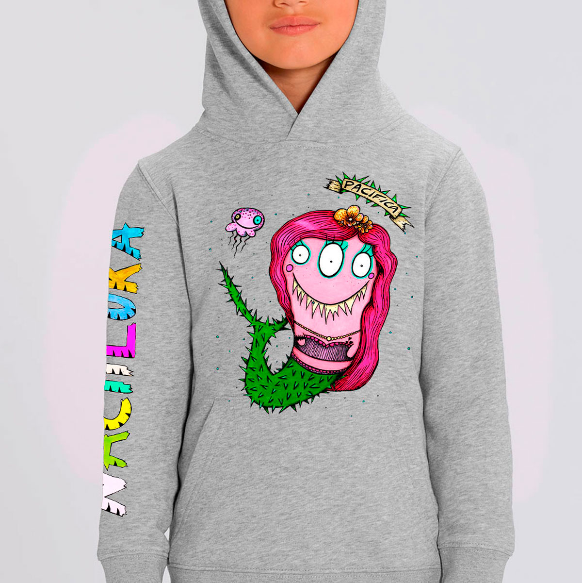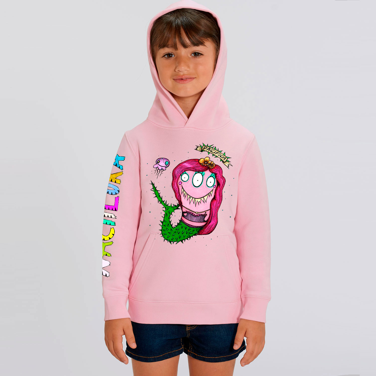 Sudadera de niña con el dibujo SIRENA PACÍFICA realizada con algodón orgánico.