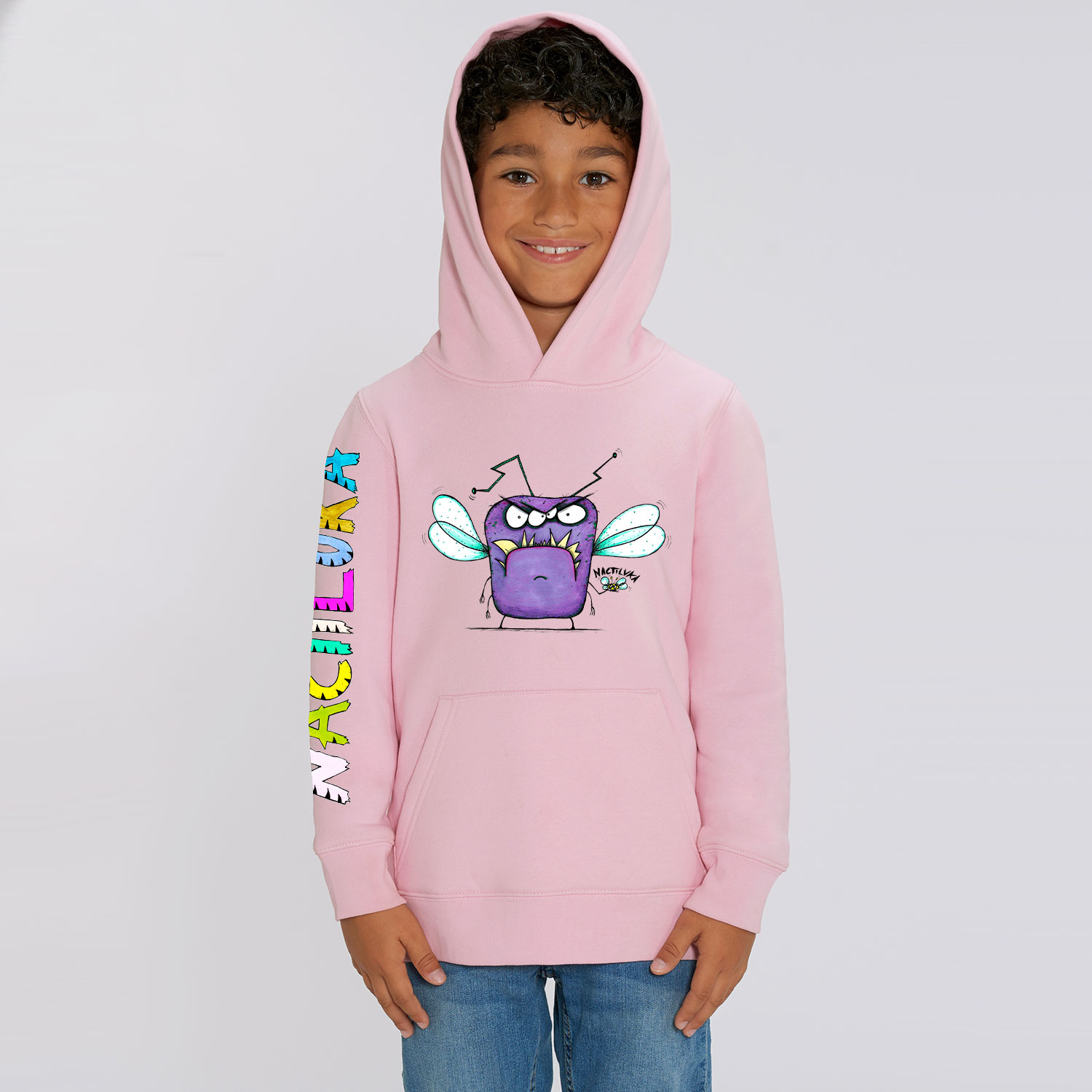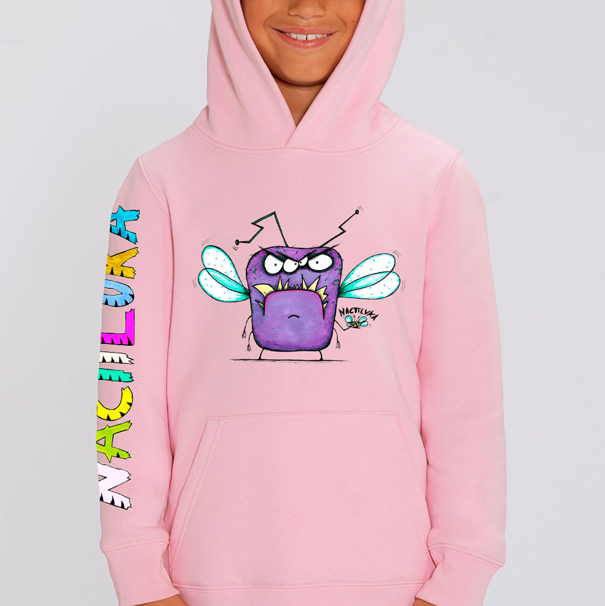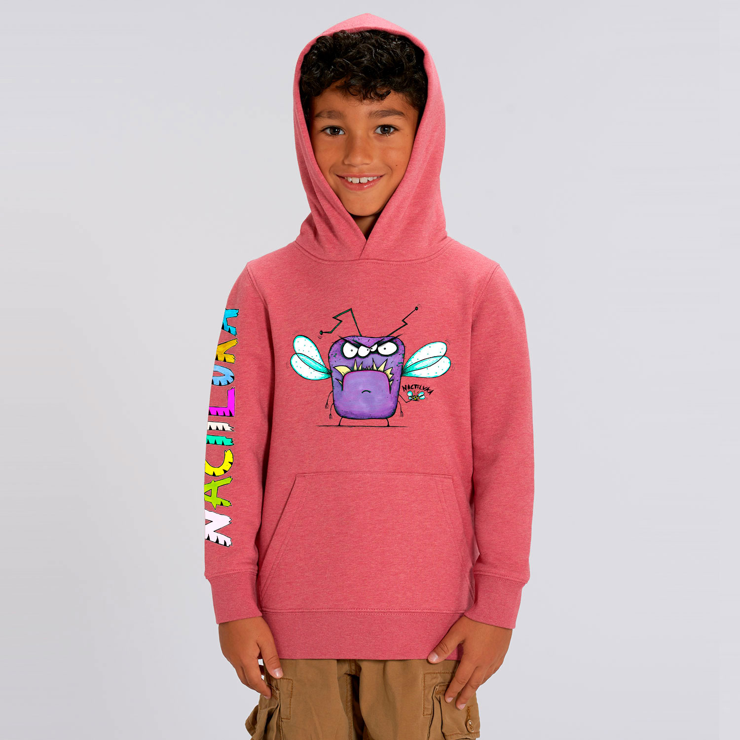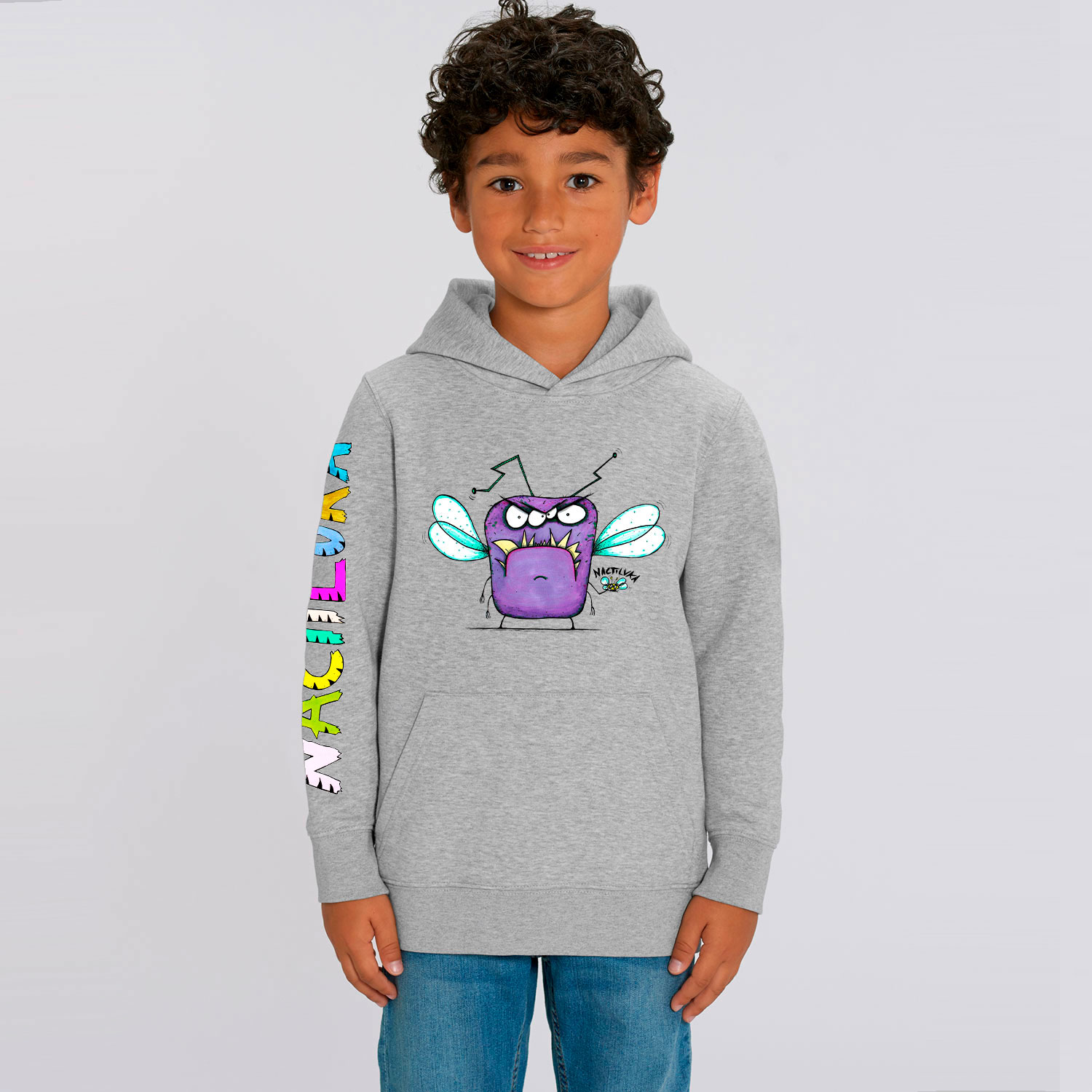 Sudadera de niño con el dibujo MOSCA realizada con algodón orgánico.